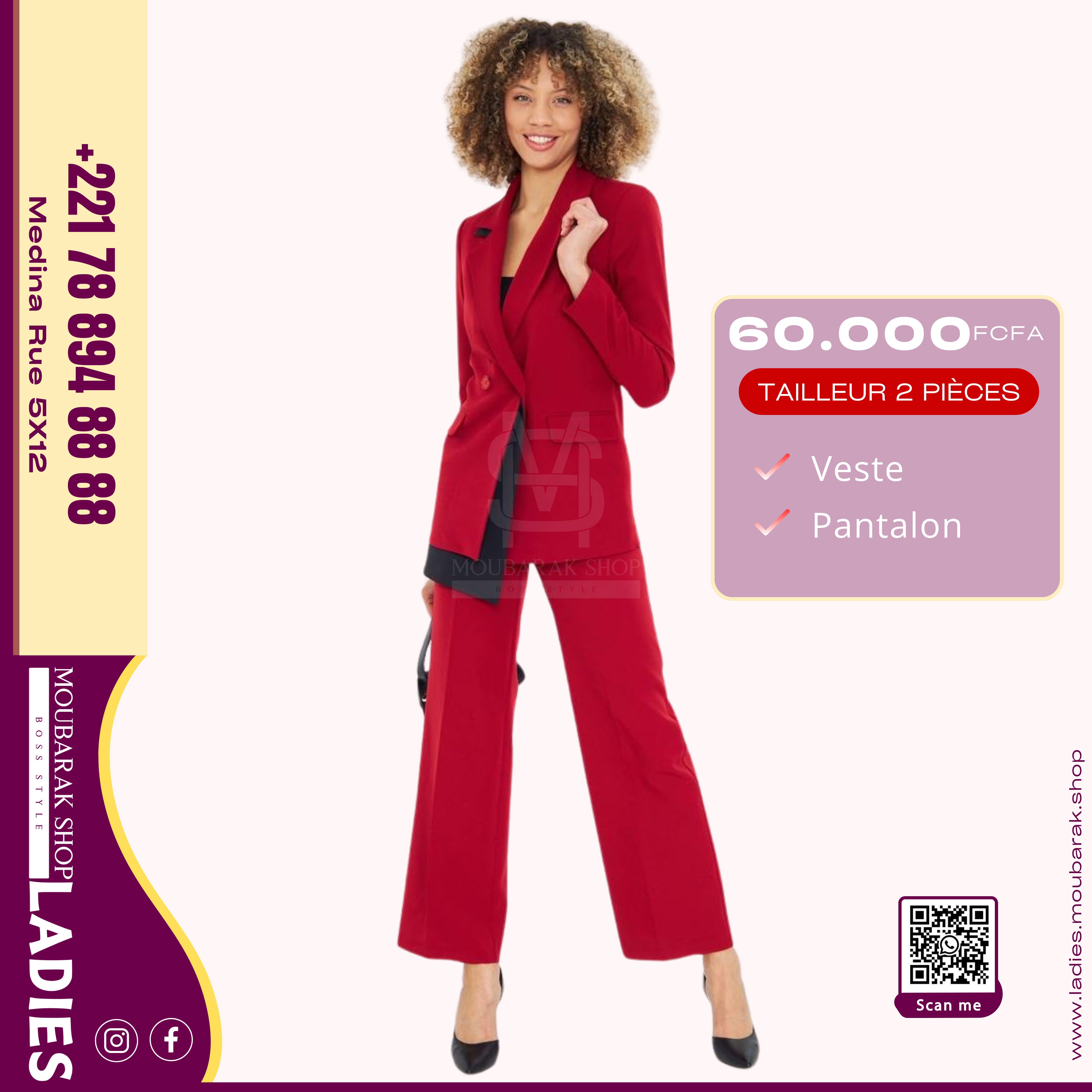 Ensemble Tailleur Pantalon Veste Croisée Rouge