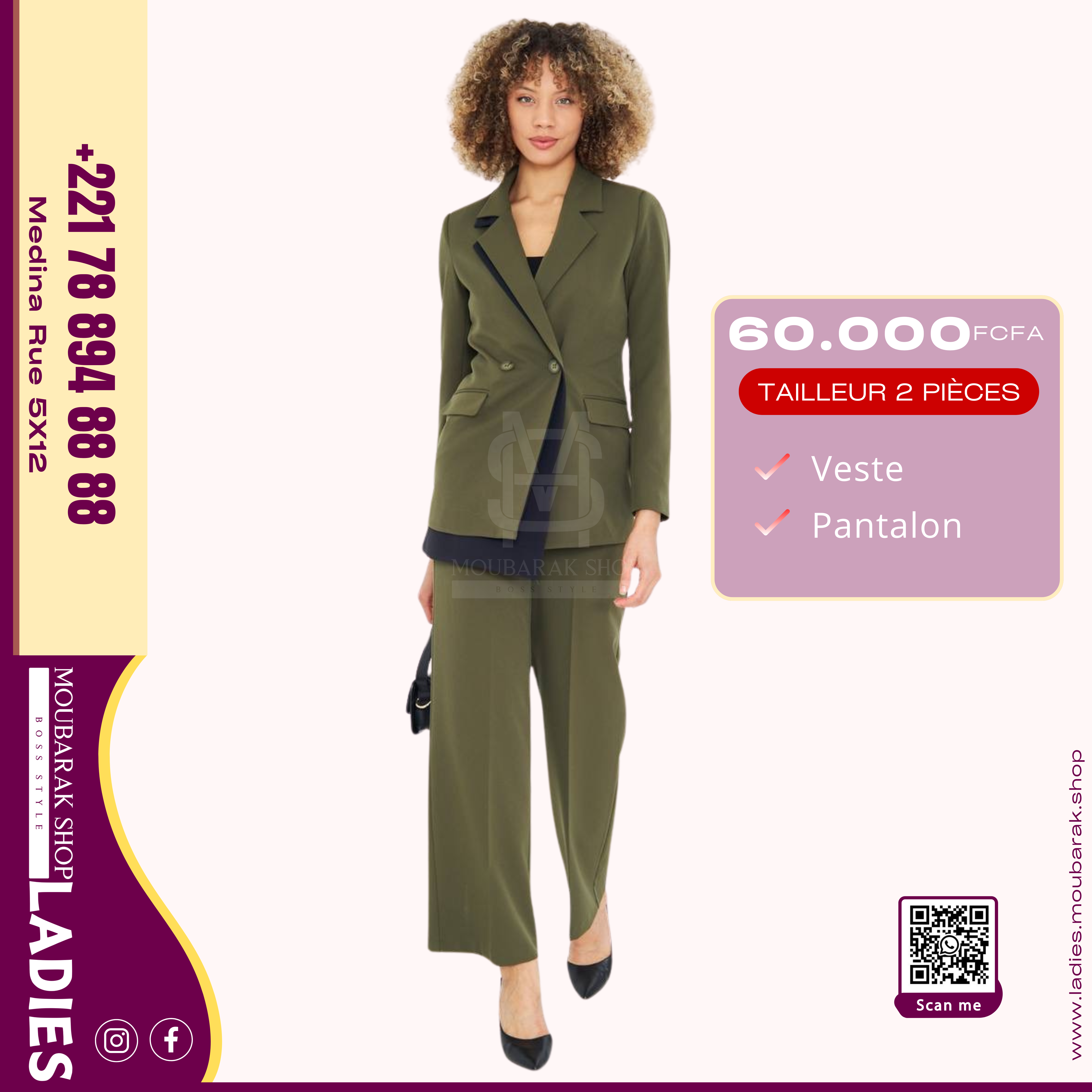Découvrez une nouvelle dimension à votre allure grâce à l'ensemble tailleur veste croisée vert. Spécialement conçu pour les femmes élégantes à Dakar, cet ensemble vous offre un style chic et sophistiqué, parfait pour toutes les occasions, qu'elles soient spéciales ou professionnelles. Associez la veste structurée tendance avec le pantalon fluide pour un look moderne et raffiné, en alliant confort et élégance. Profitez d'une livraison rapide et de la garantie d'une qualité premium pour votre commande de cet ensemble à Dakar, Sénégal. Démarquez-vous avec élégance en commandant dès maintenant votre tailleur femme chic !