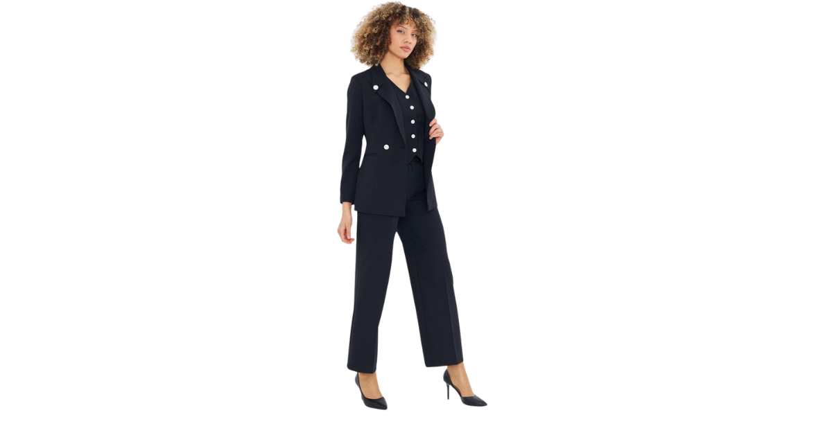 Ensemble Tailleur Pantalon 3 Pièces Veste Croisée Noir 2