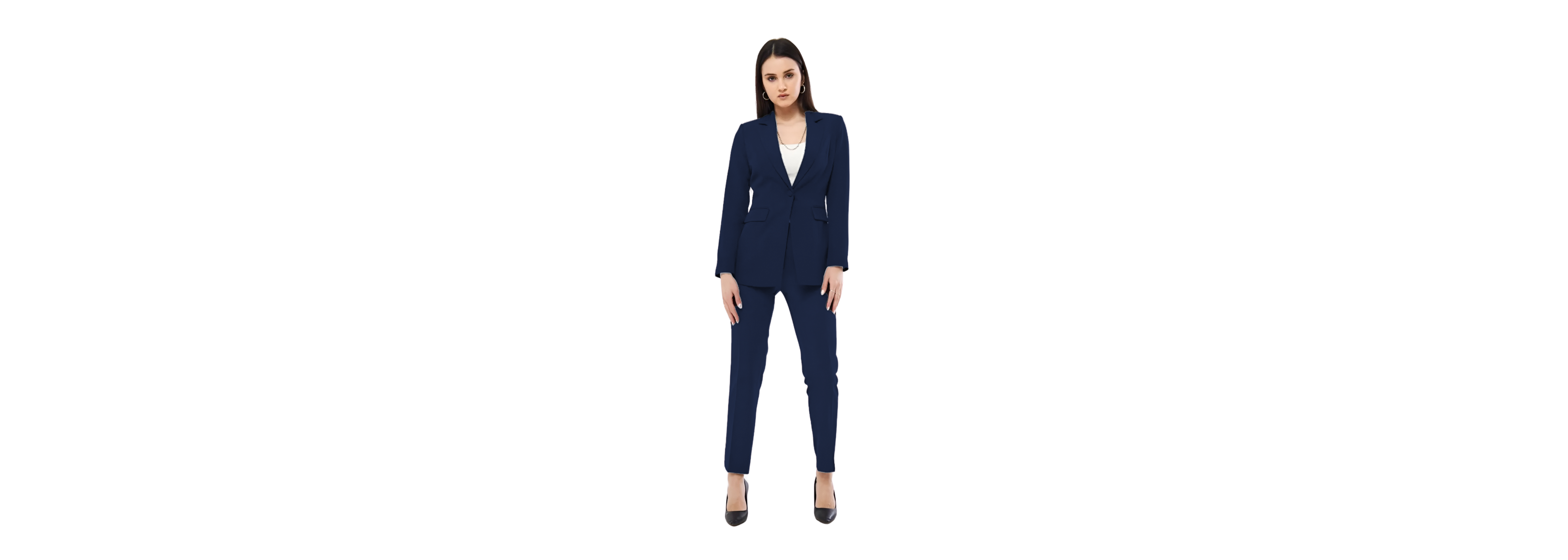 Ensemble Tailleur Pantalon 2 Pièces Veste Droite Bleu 2